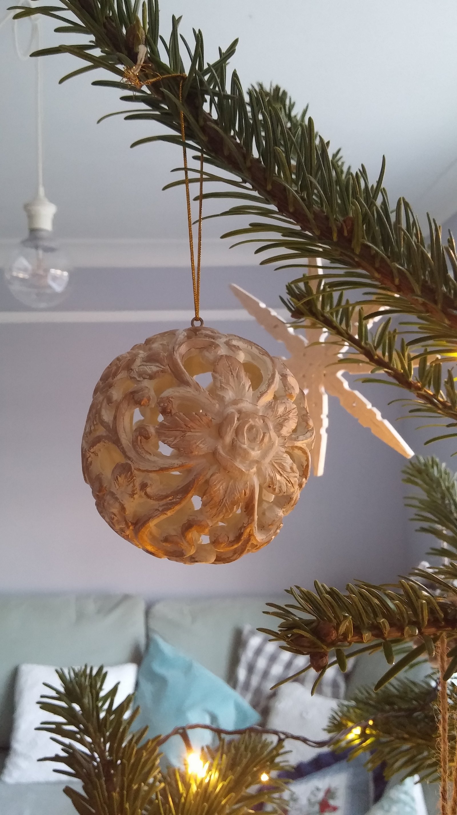 I didn’t go fully on this year with all the Christmas  stuff but at least we have a real tree (always real), fairy lights and of course some home-made decorations. I hardly spent any money this year, tried to re-use whatever I could from previous years and somehow ended up with a completely different look (which was planned by the way). My only treat was a new bauble from Cameron House in Beeston ( which I thought was perfect for me with where I am right now with my life (not to mention that the bauble is just simply fab!). Click here to see even more beautiful Christmas baubles from Cameron House