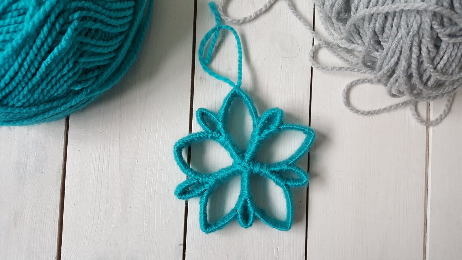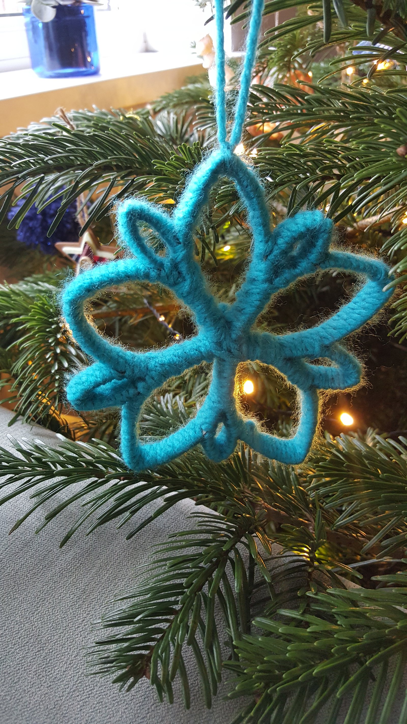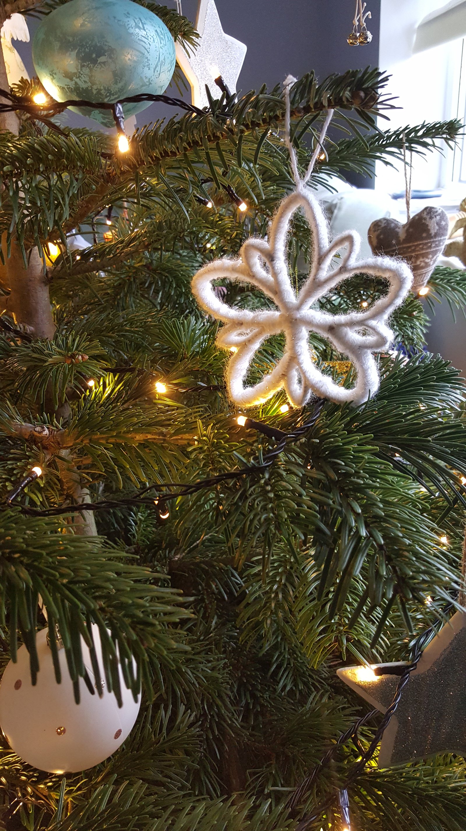 Wait until the glue has dried. And then the fiddly bit. Start wrapping the snowflake with the wool (always start in the middle). Going upwards wrap every piece closely, making sure it is not too loose but not too tight either. You don’t have to go all the way around with just one piece of wool, you can make cuts along the way. Just make sure that you tie the wool together very neatly, and don’t leave any visible knots. It should take you about 20-30 minutes to wrap the whole snowflake around (the thicker the wool, the quicker you’ll get through this). It may be a little bit time-consuming but if you (like me) tried and failed with the knitting (either I was doing something wrong or my fingers are too fat and stiff), you may be chuffed with yourself. With the end result like this I definitely am!!!