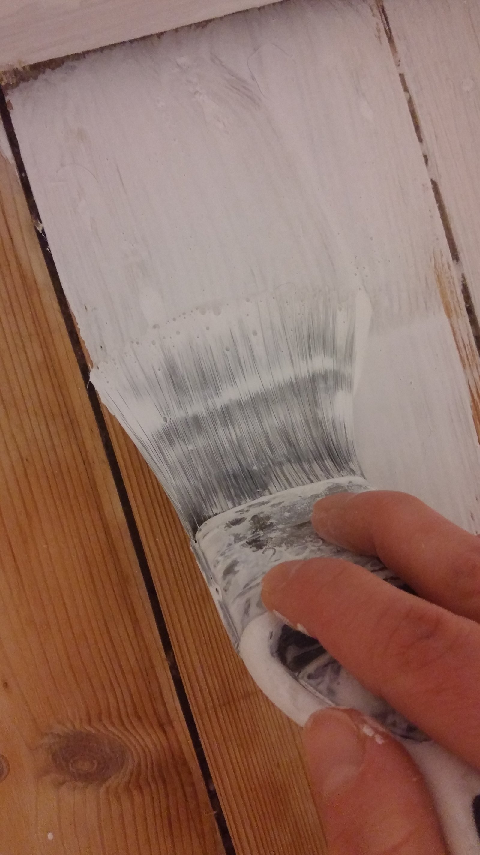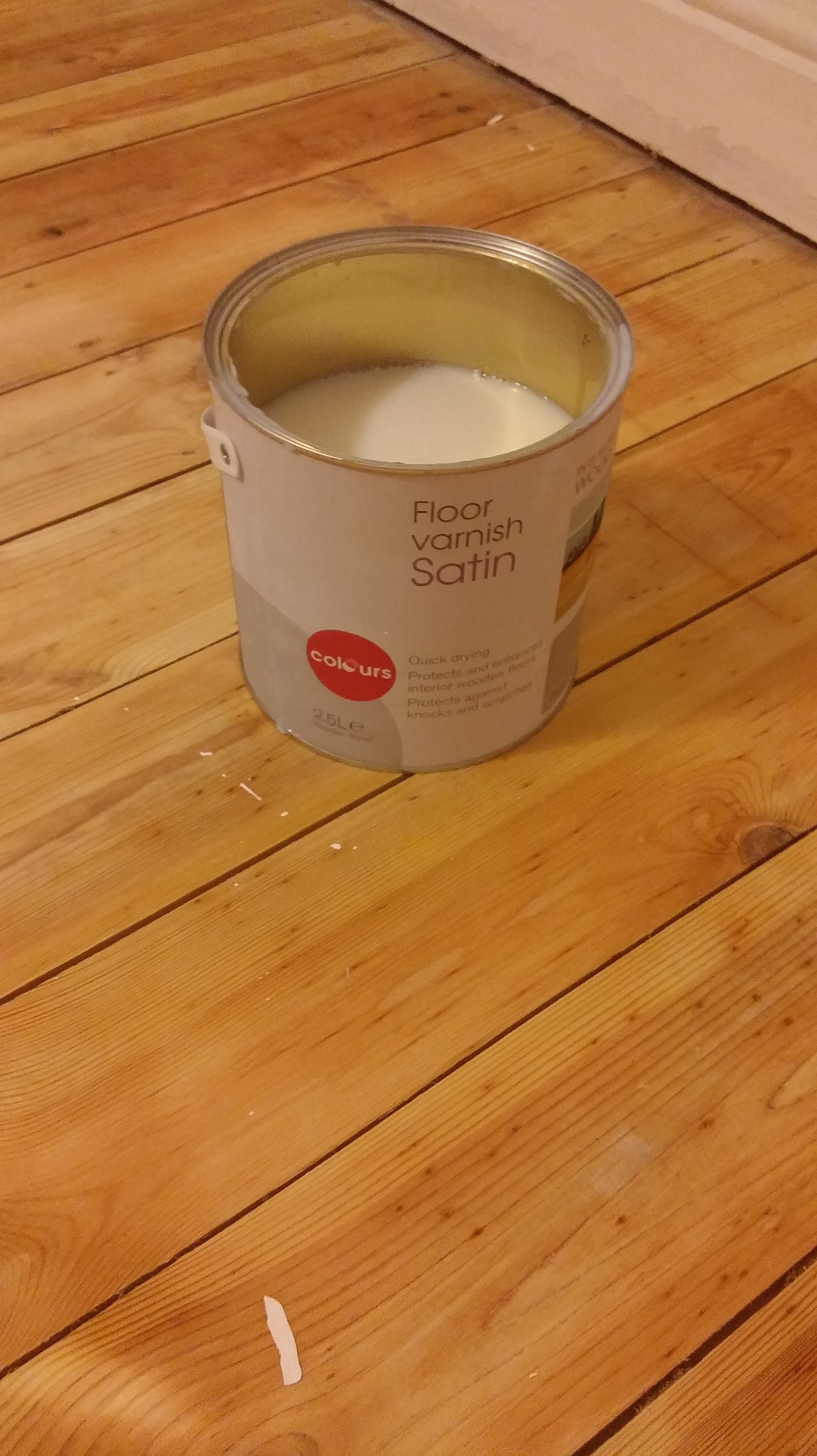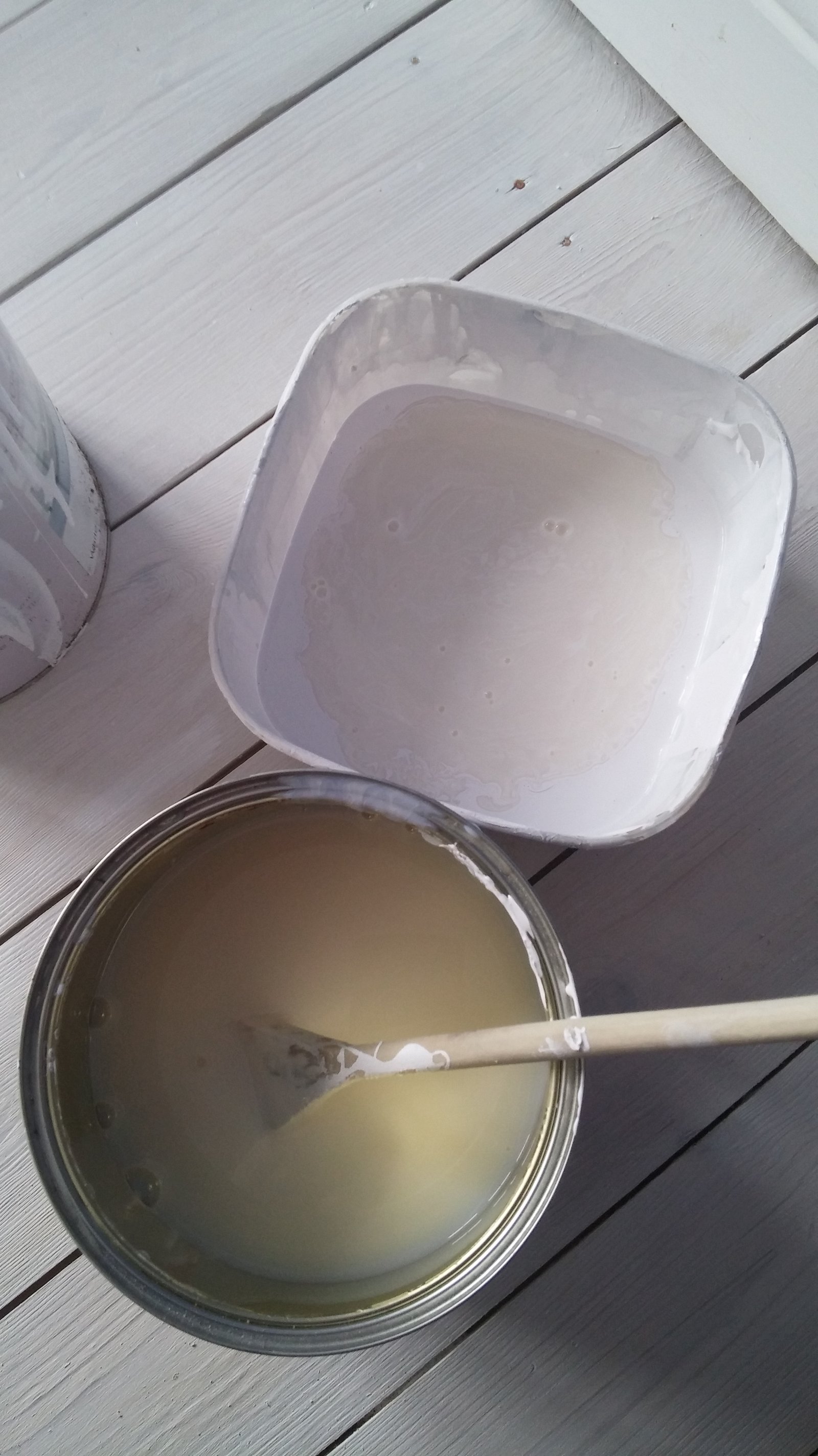 And now the part where I stepped in. Painting comes quite naturally to me, it’s kind of relaxing and I always enjoy every minute of it. It’s my “me time” (I know that sounds very boring of me, but I promise – I enjoy other things too). I chose white paint as that’s how we painted the other rooms. Although I didn’t want to just paint over our beautiful freshly sanded floorboards. I wanted the grain of the wood to be visible. If you want the same effect in your house just MIX WHITE FLOOR PAINT WITH CLEAR FLOOR VARNISH in proportion 1:1 or 1:2, depending on how much coverage you want. The paints mix together very easily so you shouldn’t have any problems with that. I used B&Q paint and varnish as after my latest accident with the paint I decided to buy the cheapest one (you can read about that little accident here).