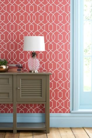 If colour is what your room is lacking then this pretty coral wallpaper (also from Next) will deliver that and more. It cost £15 per roll but it looks like a designer masterpiece. The colour is deep and it will make any room feel warm and welcoming.