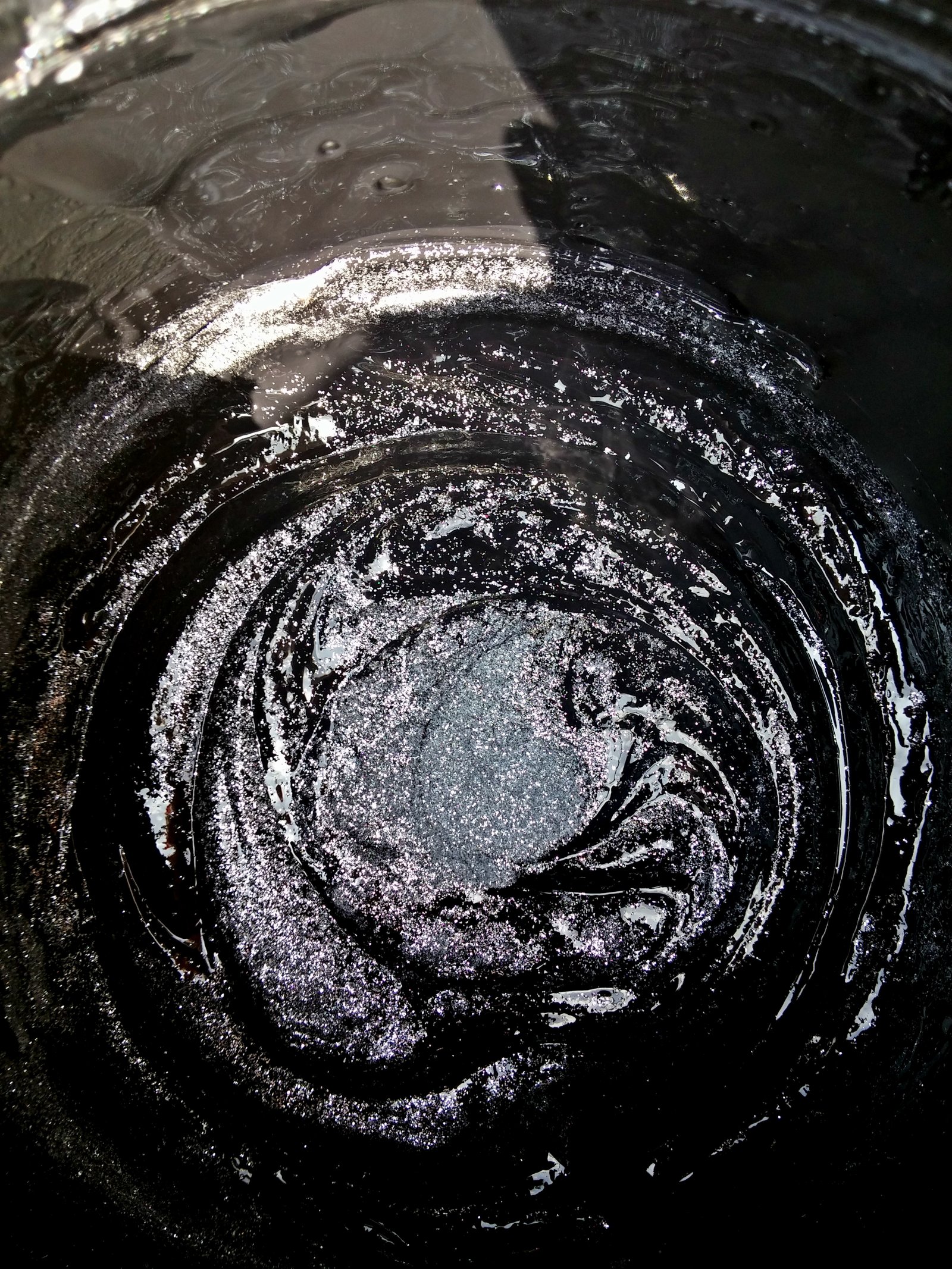 As it happened I was painting the garden wall black last week (thanks to advice of my very forward-thinking friend, thanks friend!) I decided to go with the flow and paint all the slabs black! And after a quick rummage through my kid’s craft box (and not thinking twice) I added a jar of silver glitter to the paint (minus the jar)!