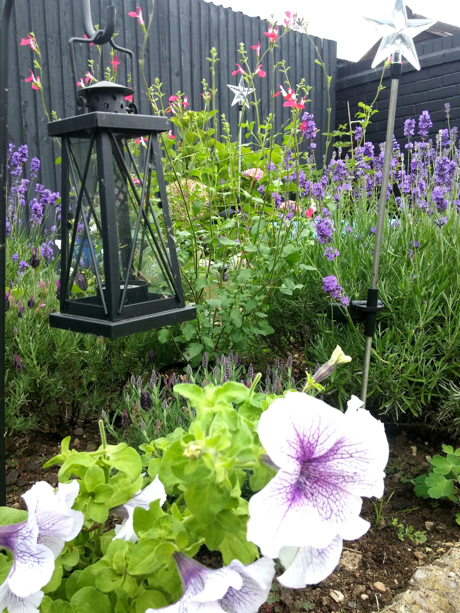 If you have old concrete slabs in your garden you can even go as far as painting them black like I did (which you can read about in this post). By mixing in some glitter you can create a beautiful clean look for under £20!