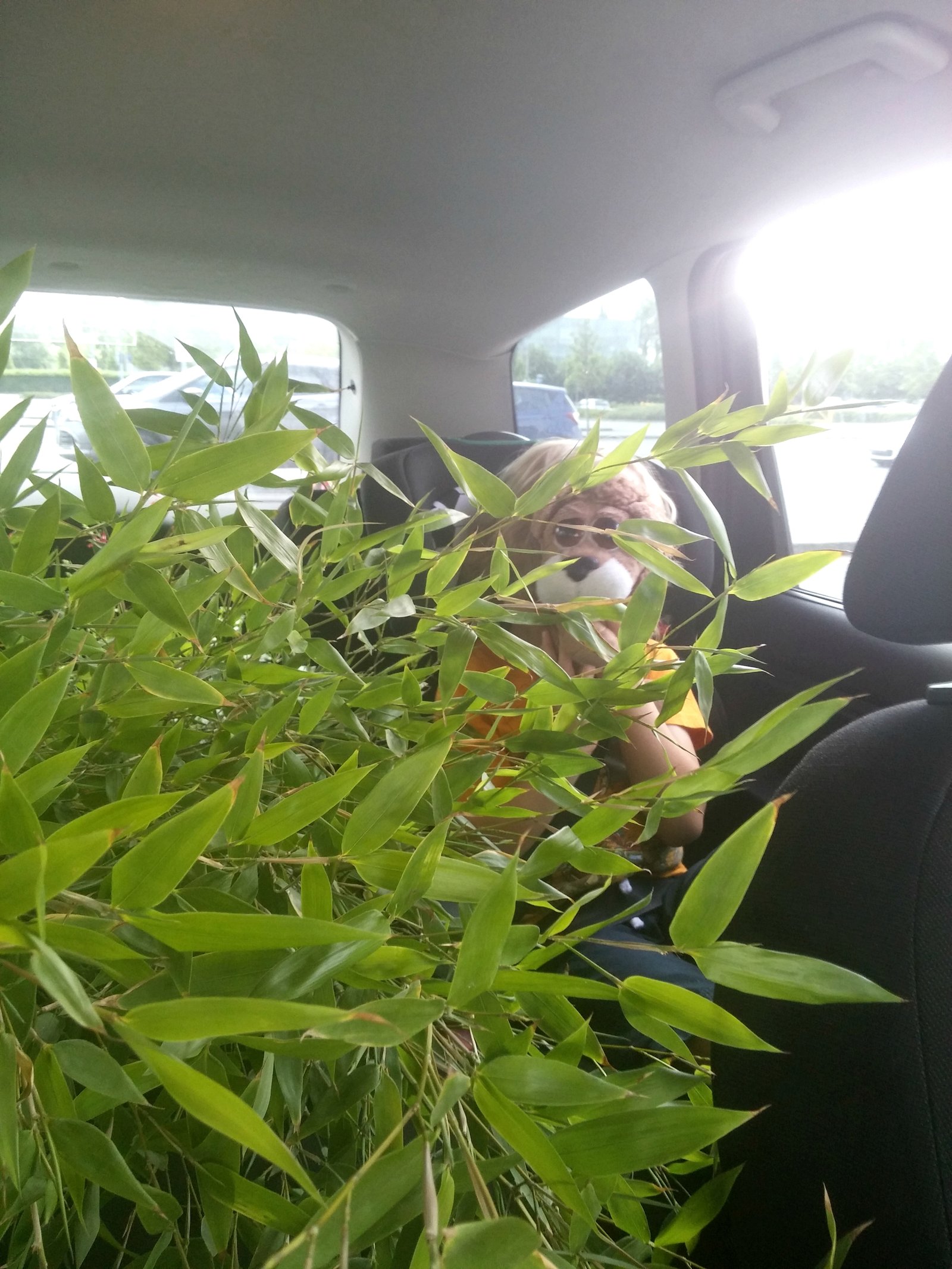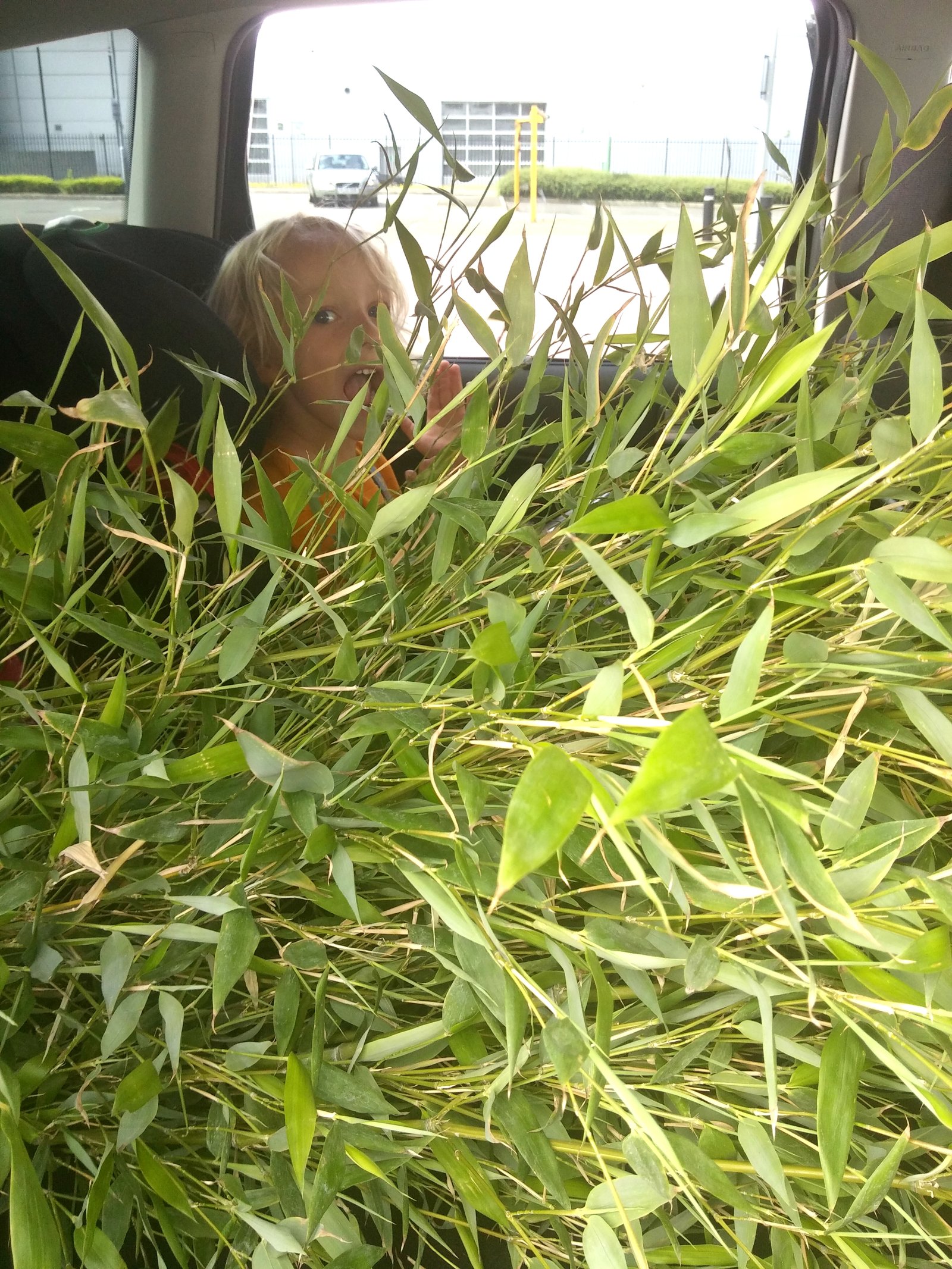 Oh, and here’s that bamboo tree in transport… Can you spot the kiddo? Poor Kasper… the tree was tickling him all the way home.