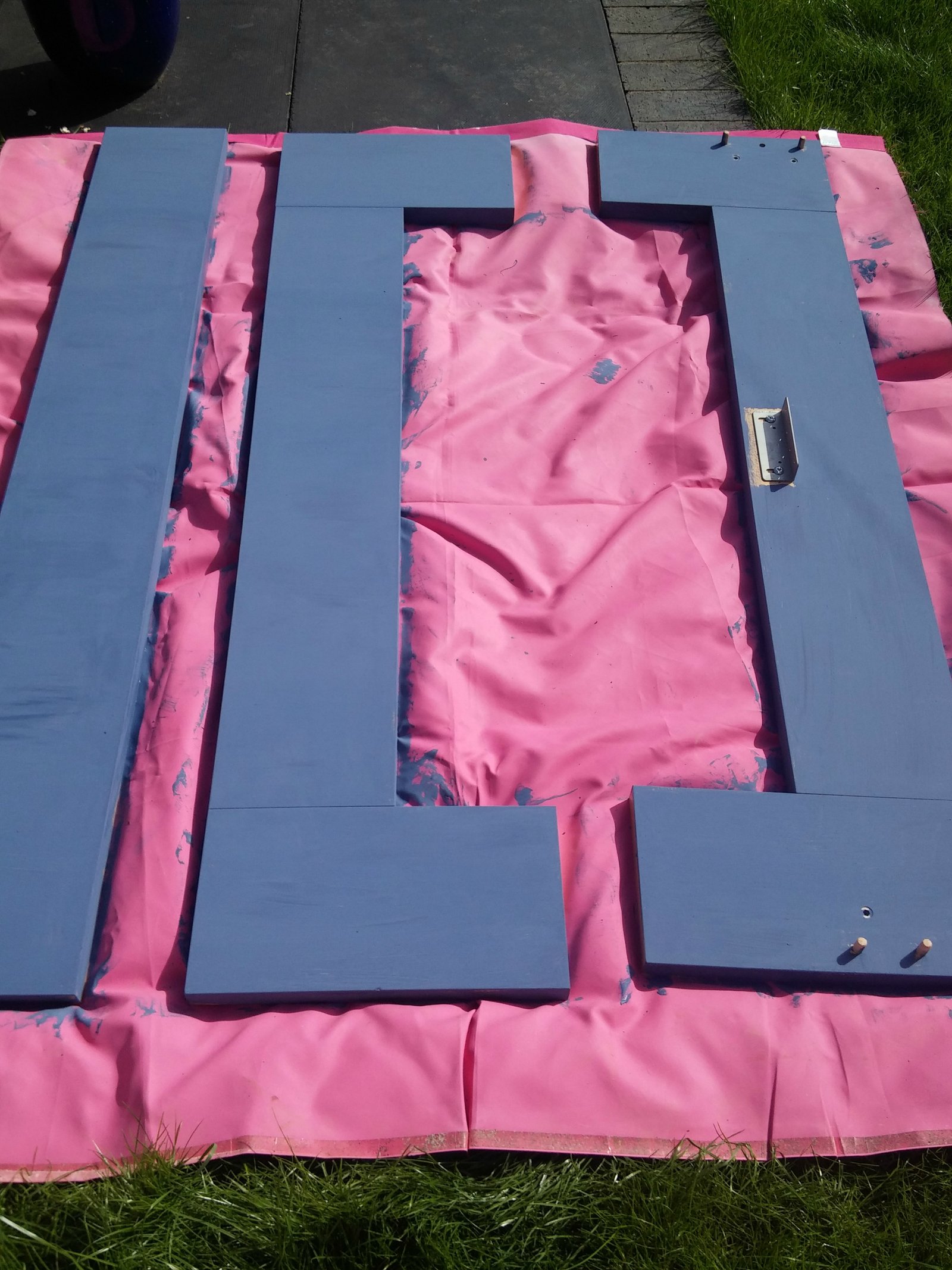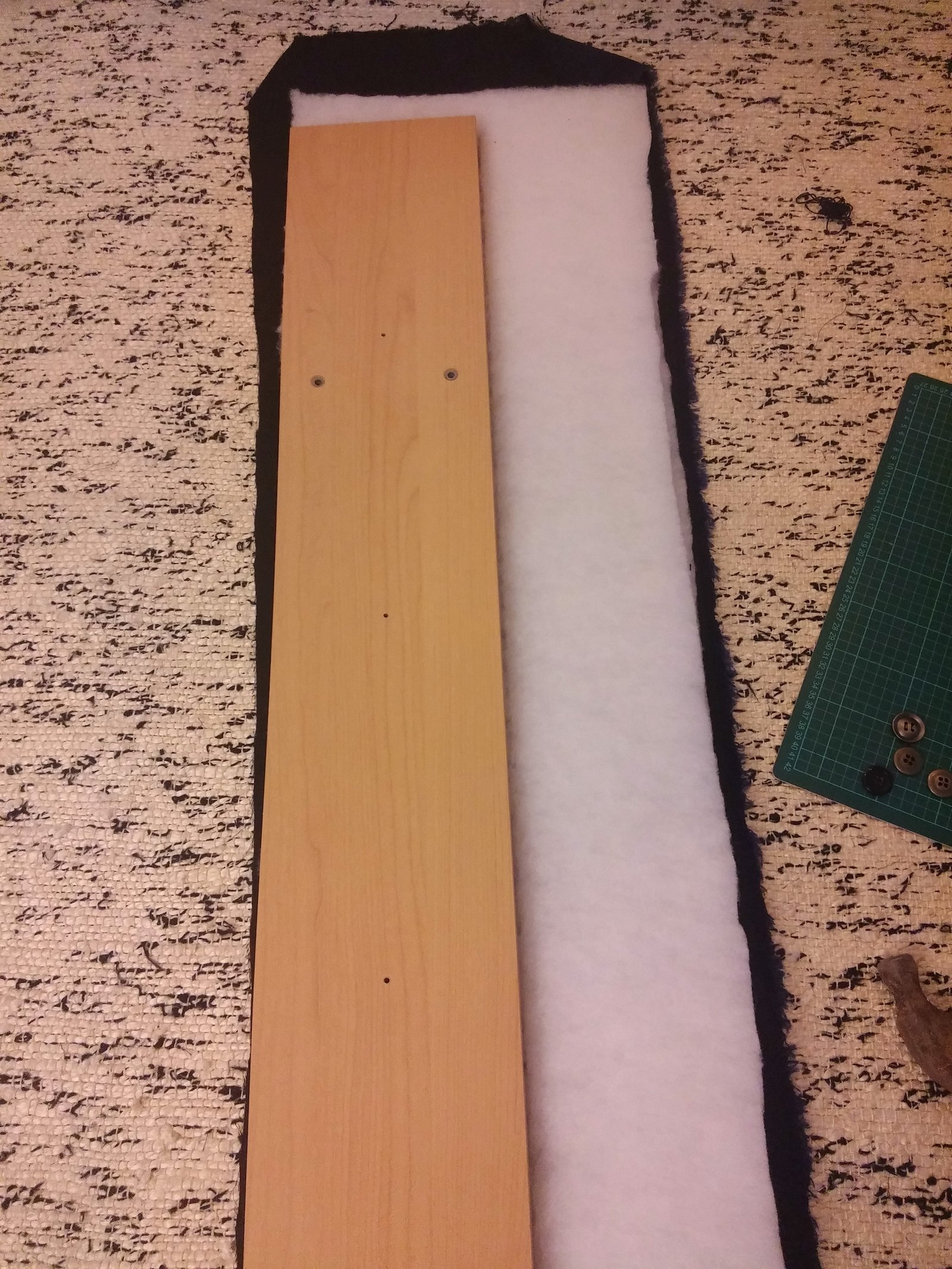 I have left two panels of the headboard unpainted and ready for upholstering. That was supposed to be the easy part. It wasn’t. As it turned out the panels, although not made of solid wood, were very hard and using a staple gun was out of the question. I think I must have looked very glum at that point because Rob decided to nip to our local B&Q (which isn’t very local to be honest) and bought three packs of different nails and staples. After trying them all and almost giving up we finally started making some progress.