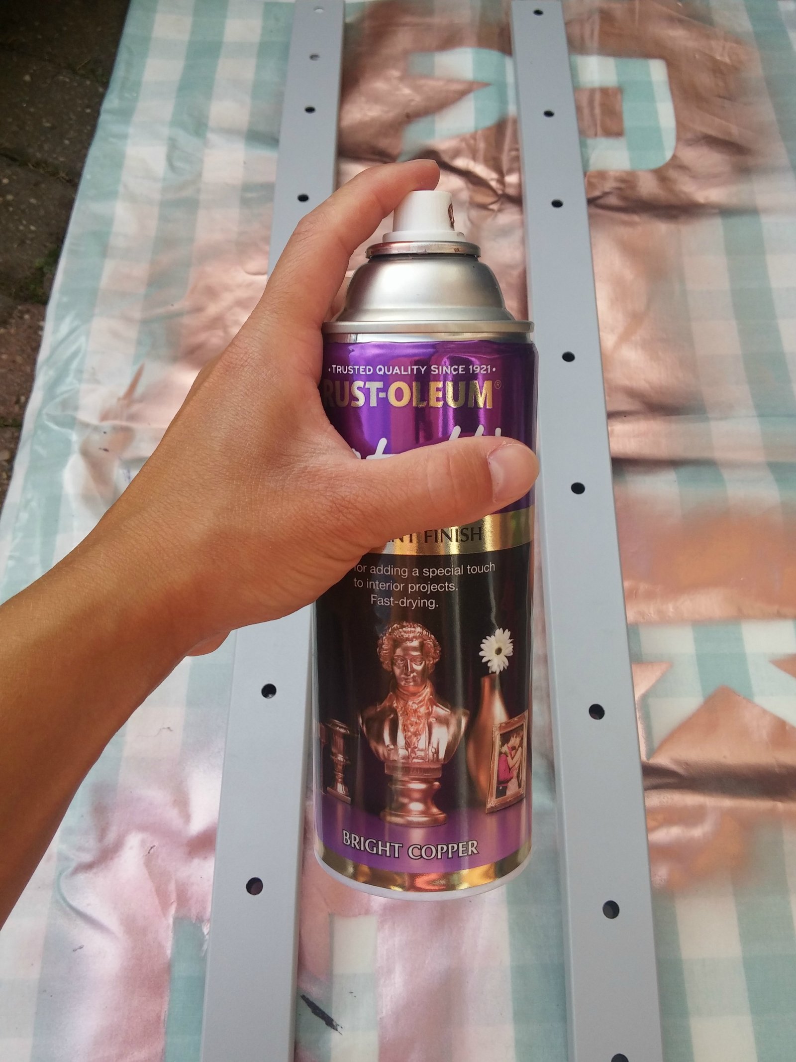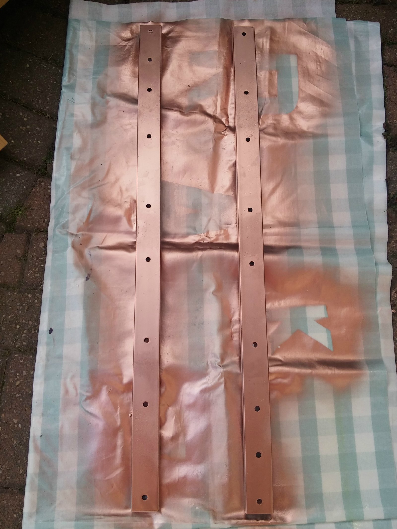 In the meantime I have also spray painted the metal panels of the headboard with bright copper paint. They are not very visible but you know what they say: the devil is in the detail (or something like that.)