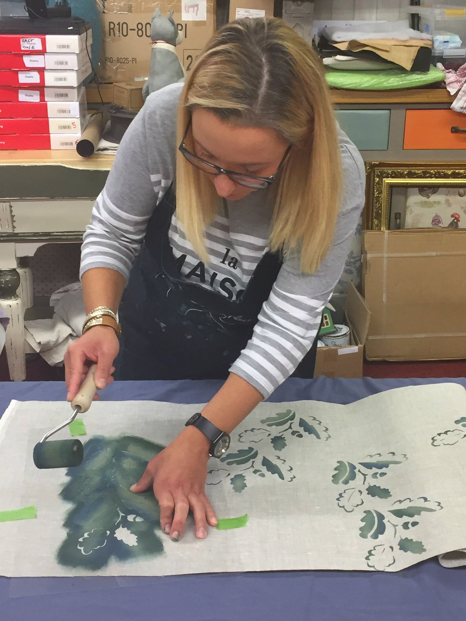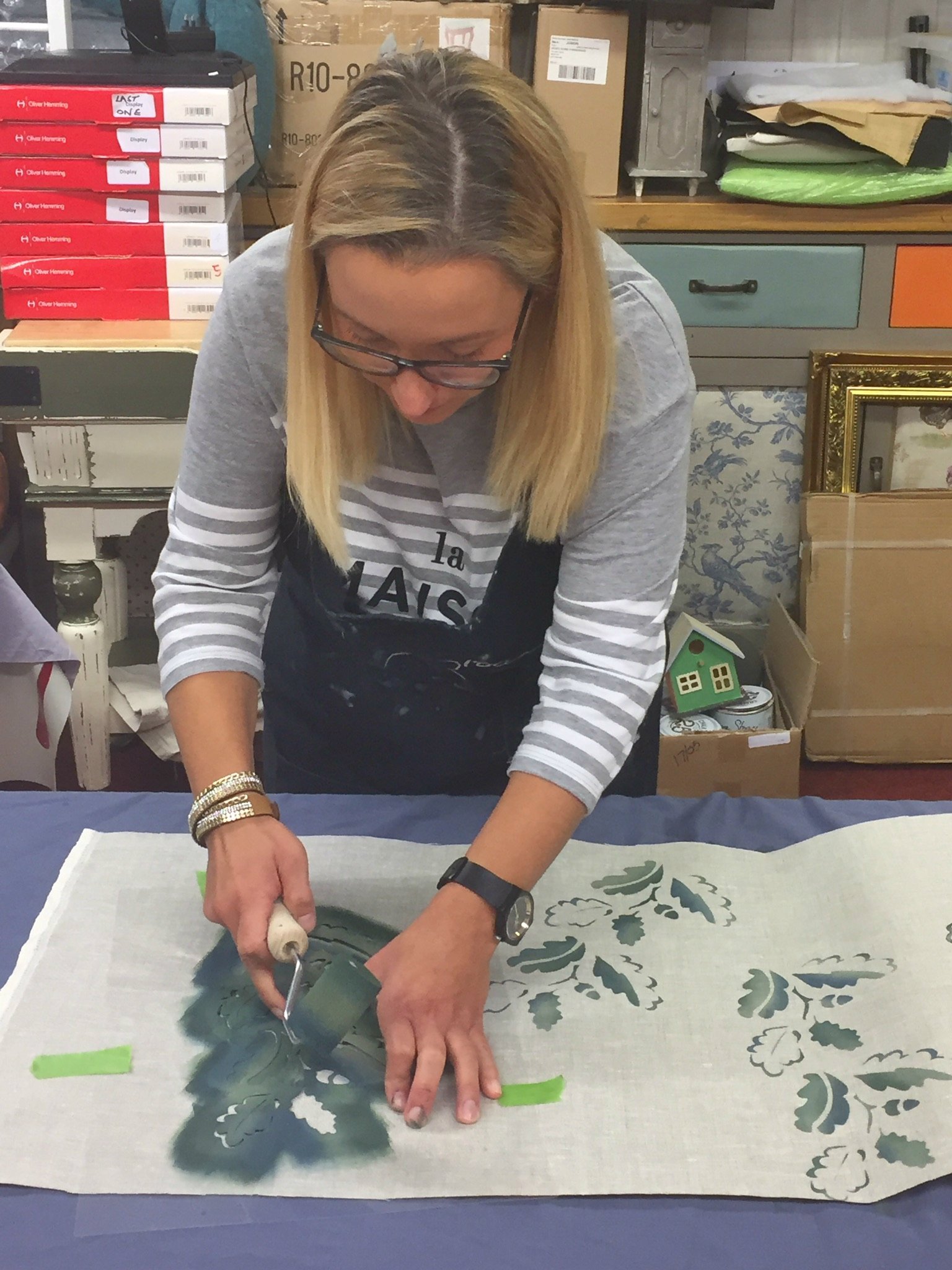 Your lampshade and stencilled fabric look gorgeous, Anne Marie! Looks like a great workshop!