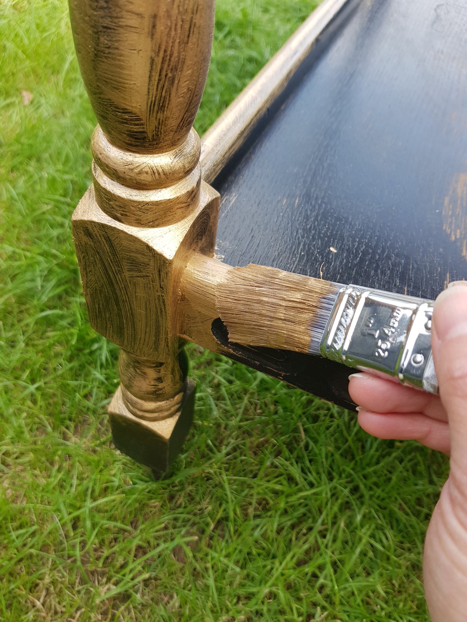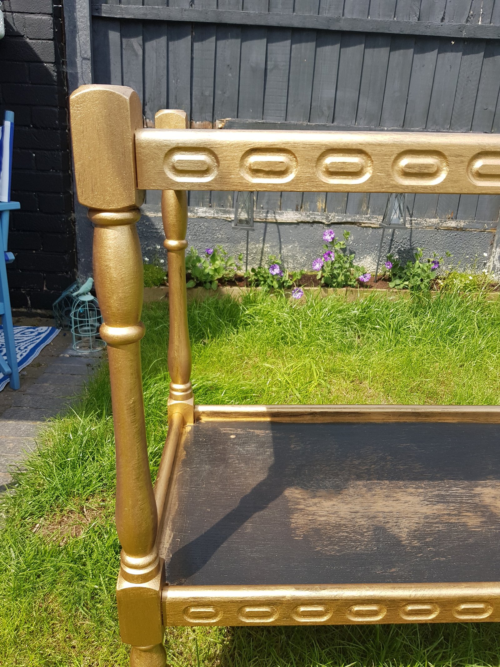 Then I started by applying the metallic gold paint (try this one) to the sides of the trolley. The initial plan was to have the gold only in those distressed places coming through. But I quickly realised that this gold paint is simply to good to be left almost invisible. So I decided to paint the top of the trolley gold too. And I’m glad I did! This change of plan has made all the difference. So my advise to you is to ALWAYS STAY OPEN MINDED! Even if you think you have a plan it’s good to be open to new ideas that pop in your head along the way. And that especially relates to all your home DIY projects!