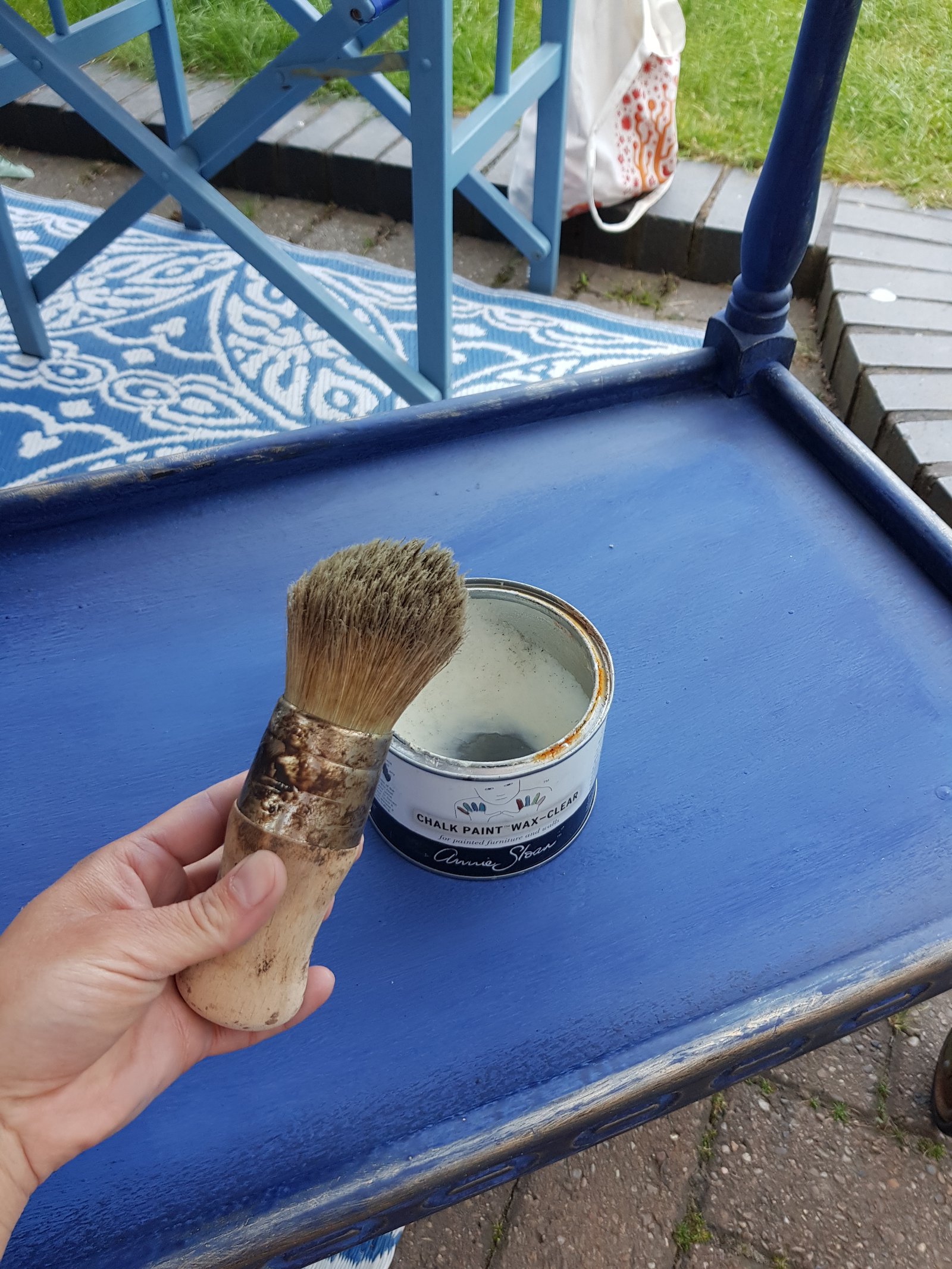 And then it was time to use my favourite colour – Napoleonic Blue by Annie Sloan. If you’ve been following my Instagram account for a while or if you read my post in the past, then I’m sure you know that I’m a big fan of blue colour… In fact I’m a little bit blue crazy! So of course I had to paint my vintage trolley in yet another shade of blue. (Yep, there are fifty shades of this colour in my house… But don’t try to read too much into it. Similarities end here… even though I wished otherwise)