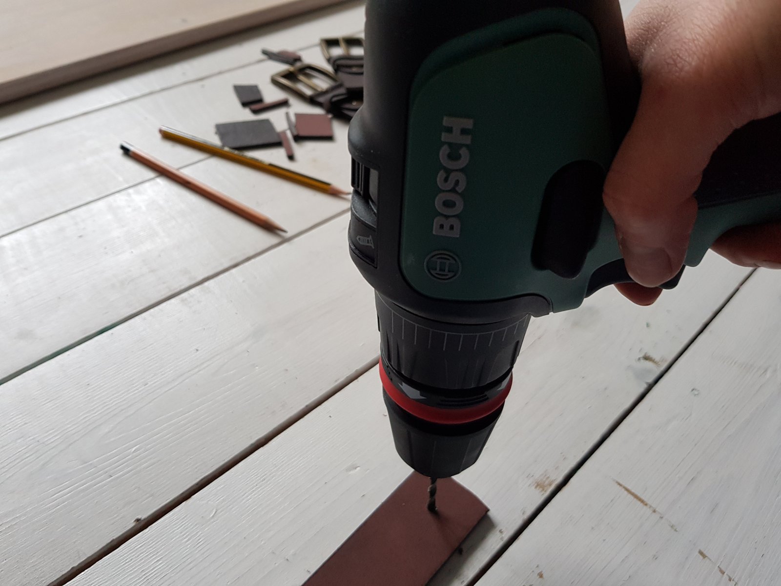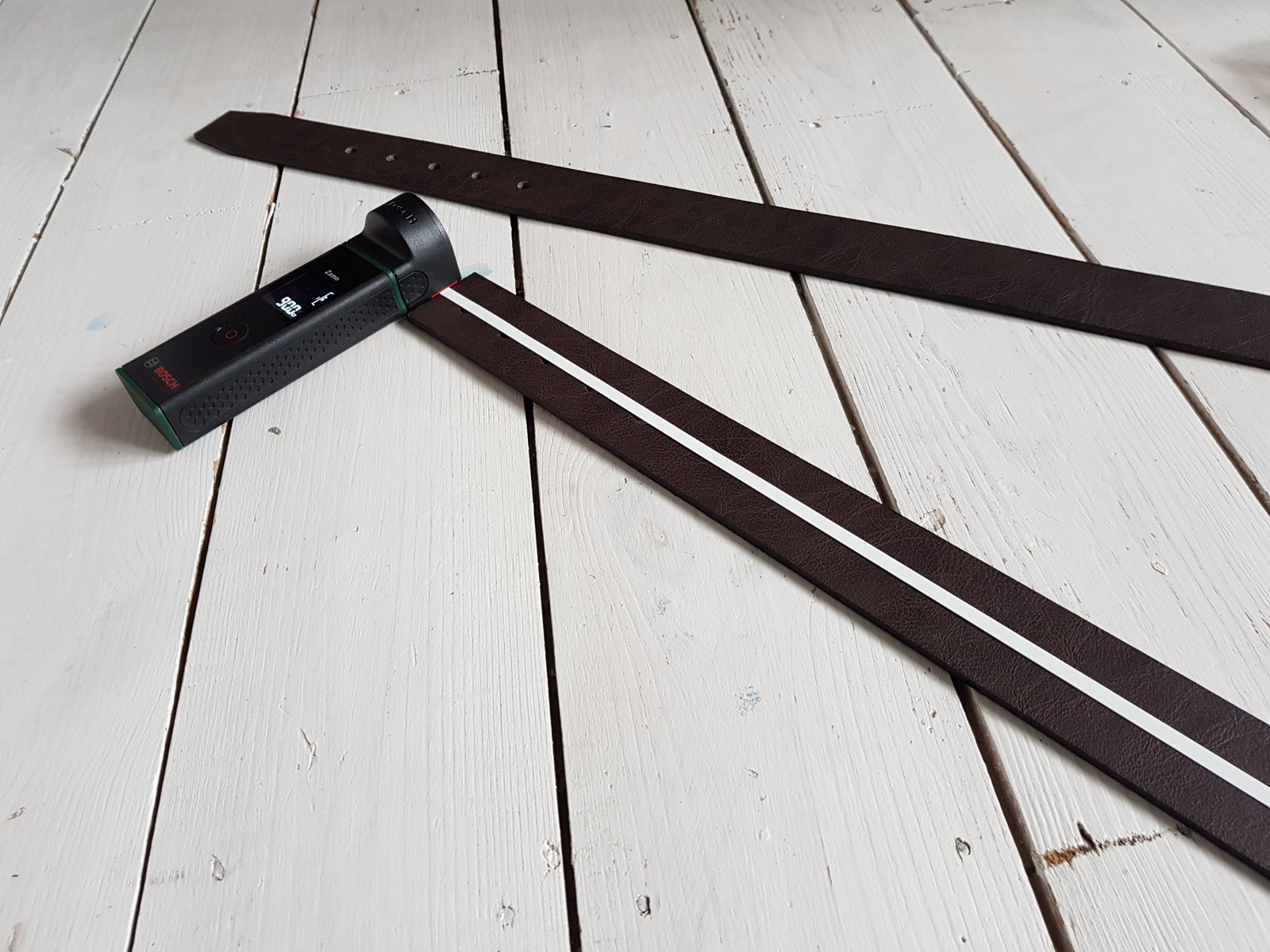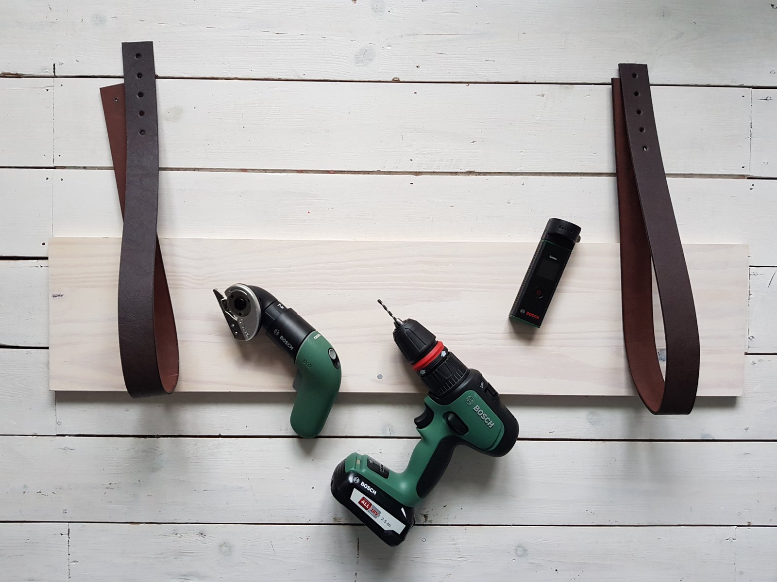 The cost of this DIY leather strap shelf will highly depend on what you already have in the house. I used one of my son’s old shelves we took down recently. Just gave it a paint wash and it was ready to use. As all the tools were supplied by Bosch, I just needed to buy some leather belts and they only cost me £10 for two. And that was how much I’ve spent in total. But you may already have some old leather belts in the house (or not so old but your partner won’t notice their disappearance). In that case the cost of making this belt shelf would be zero! Still need convincing?