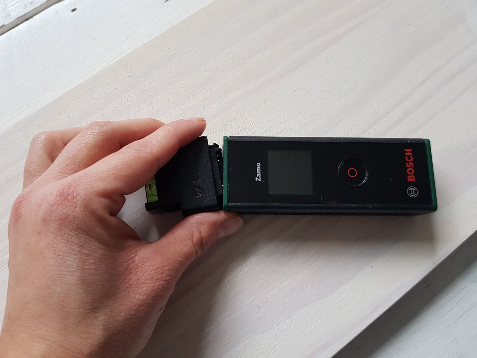 Now, I could finish here but as I already mentioned Bosch’s Zamo laser measure has become my new best friend. And here’s why… It’s available as a set with three adapters. And its laser line adapter in particular just made my whole life a lot simpler. I’ve been known for running around the house with a hammer or a drill constantly hanging and rehanging things (like shelves or pictures). But there’s been one skill that neither me nor my partner ever really got to grips with. And that is – hanging things straight! It’s almost like I have this special talent for hanging things NOT STRAIGHT!