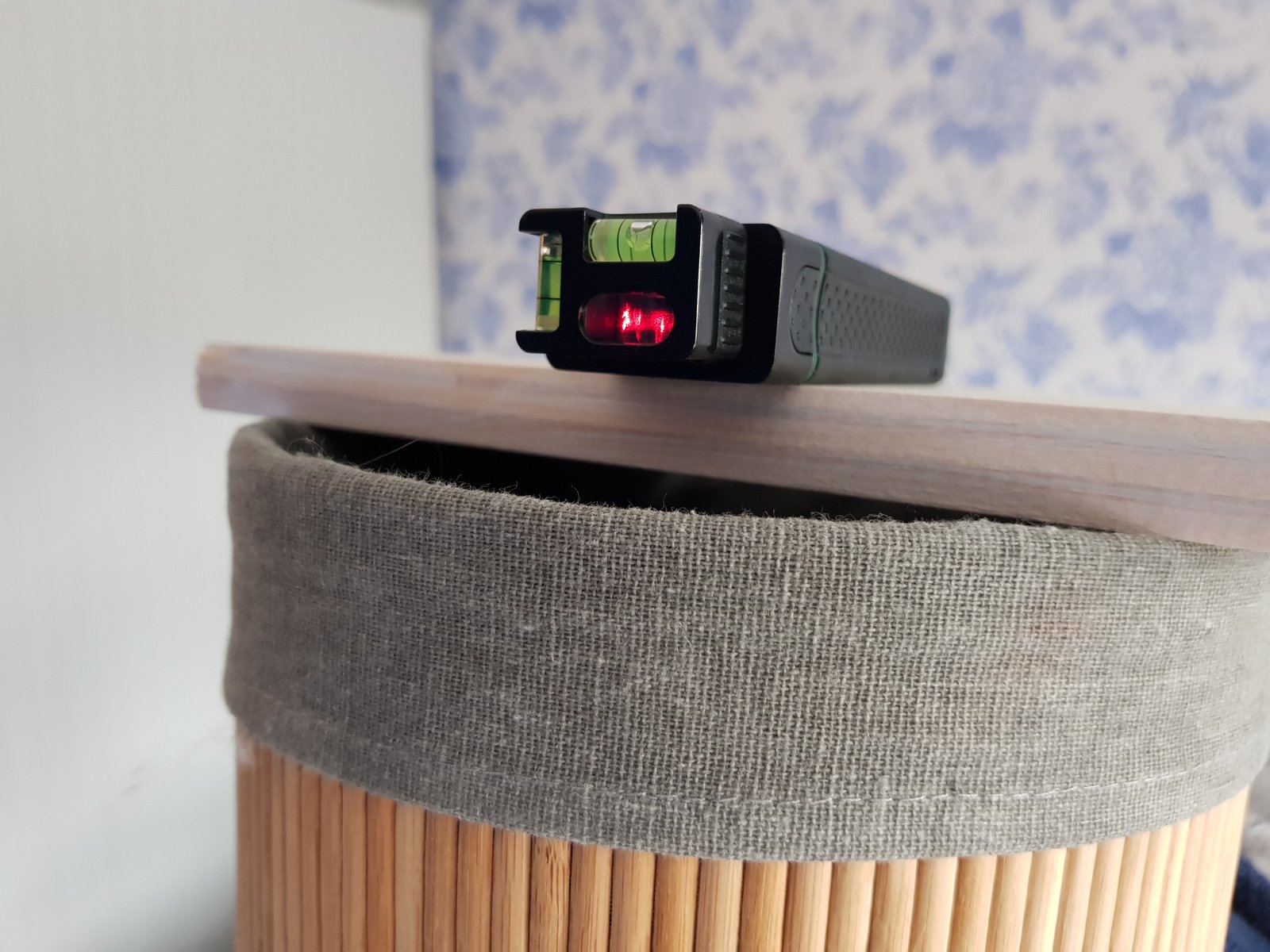 But remember that the line is where the straps will be attached to the wall. The shelf itself will be about 20 cm lower. So take that under consideration, otherwise you’ll end up with a shelf at the height of a table.